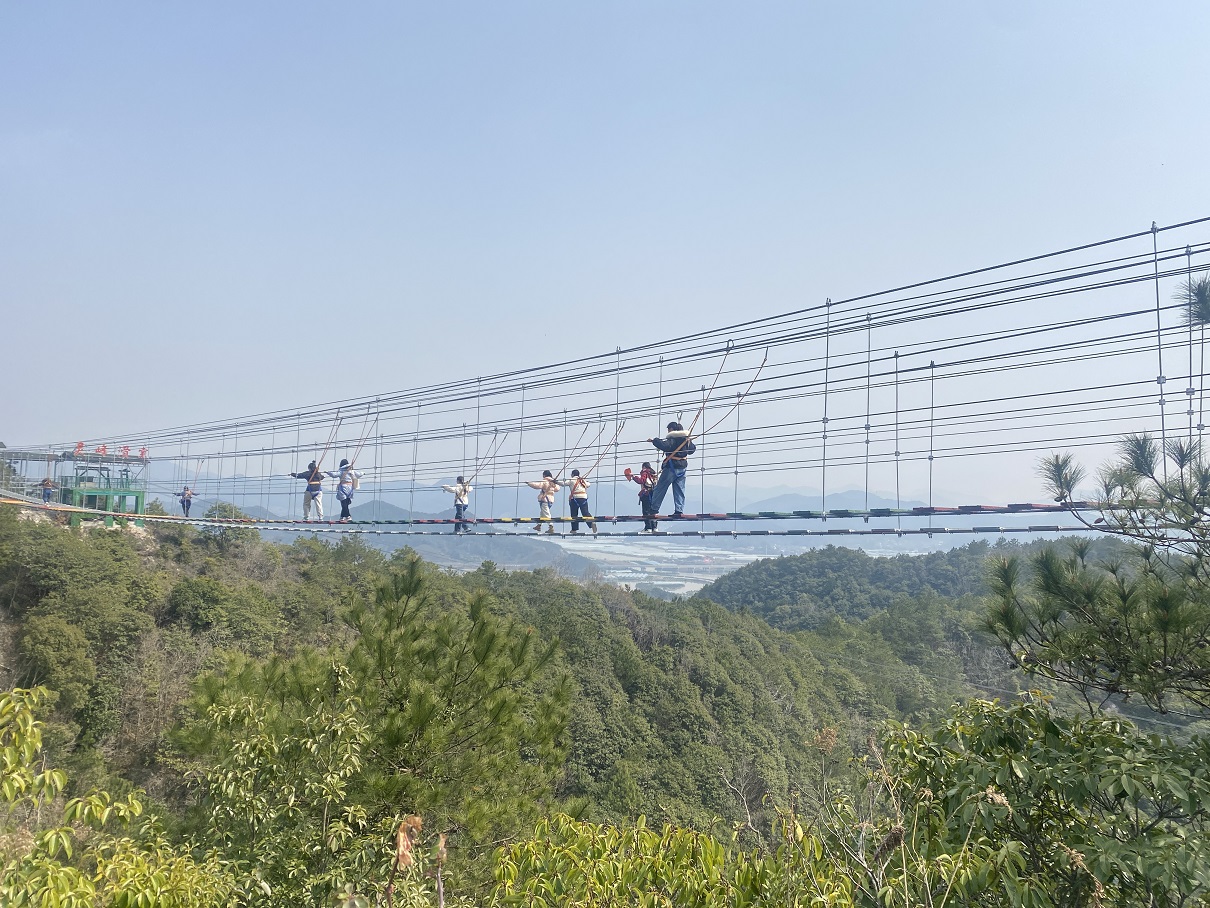 景區內的高空體驗項目成為活動亮點。女職工們分組挑戰“步步驚心”、玻璃橋及森林水滑道,在驚險與趣味中突破自我。玻璃橋上,她們攜手前行,以默契配合跨越懸空障礙;水滑道疾馳而下,團隊協作讓速度與激情并存。這些項目不僅考驗個人膽識,更強化了互助協作的團隊精神?。