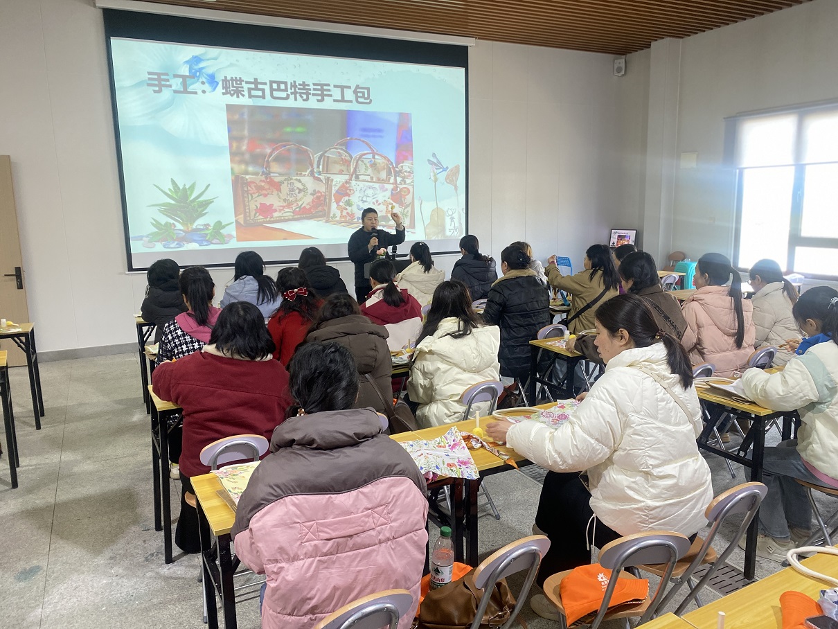 老師為大家介紹了蝶古巴特包的創作技巧,帶領大家一步步制作,從挑選復古印花紙、裁剪圖案,到使用專用膠水構圖拼貼,最后利用清漆封層,無不細致講解。隨后,大家紛紛動手,積極參與,互相幫助,現場氣氛熱烈。原本素凈的帆布包逐漸被絢麗的拼貼圖案覆蓋,成為承載公司溫情的藝術載體。