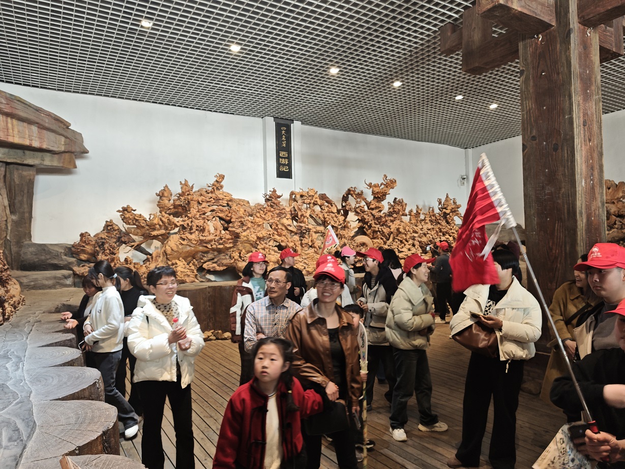 此次出游目的地為安徽太湖縣五千年文博園。抵達(dá)景區(qū)后,大家迫不及待地進(jìn)入文博園,跟著導(dǎo)游的講解徜徉在五千年?duì)N爛文化中:尋根問祖文化墻、摩崖瀑布、中華孝道園、中華漢字龍見證古典文化創(chuàng)意;“孔子列國(guó)行”、“老子天下第一”、“釋迦牟尼臥佛”見證儒、道、佛“三教并流”的和諧文化;1500米巨幅歷史長(zhǎng)卷、秦始皇塑像群、茶馬古道,五千年根雕藝術(shù)館——上千件5噸重根雕讓大家感嘆化腐朽為神奇的根雕藝術(shù),萬佛塔、華夏愛情文化園、中華百工坊、百年民俗館、四大名著文化園再現(xiàn)歷史文化的千年滄桑……一期、二期兩個(gè)園內(nèi)景點(diǎn)錯(cuò)落有致,它們濃縮著中華五千年文化的精髓,每一塊磚瓦、每一處雕刻,都仿佛在訴說著往昔的故事,吸引著大家紛紛駐足觀賞、拍照留念,活動(dòng)在大家無數(shù)次的贊美中愉快結(jié)束!