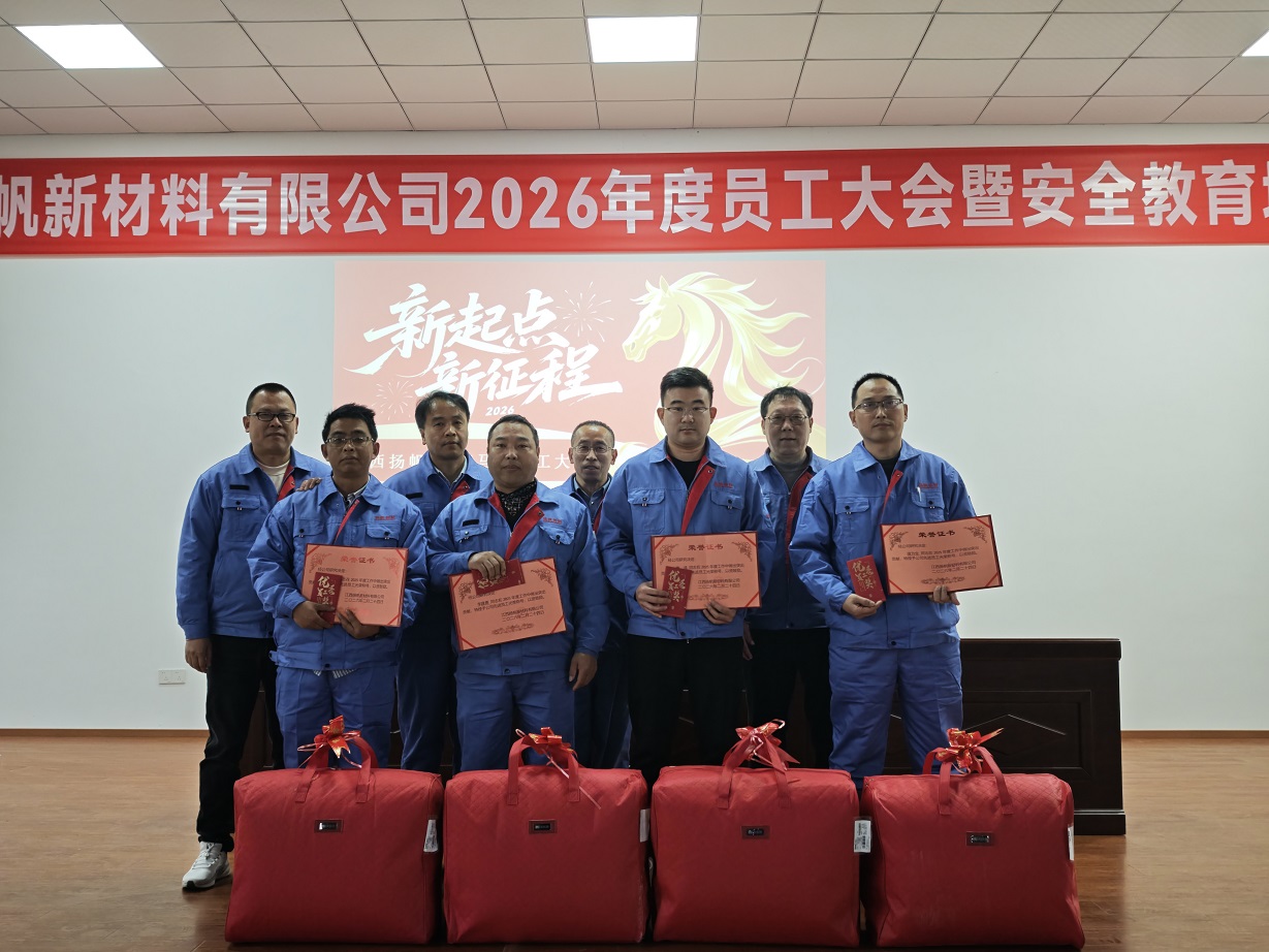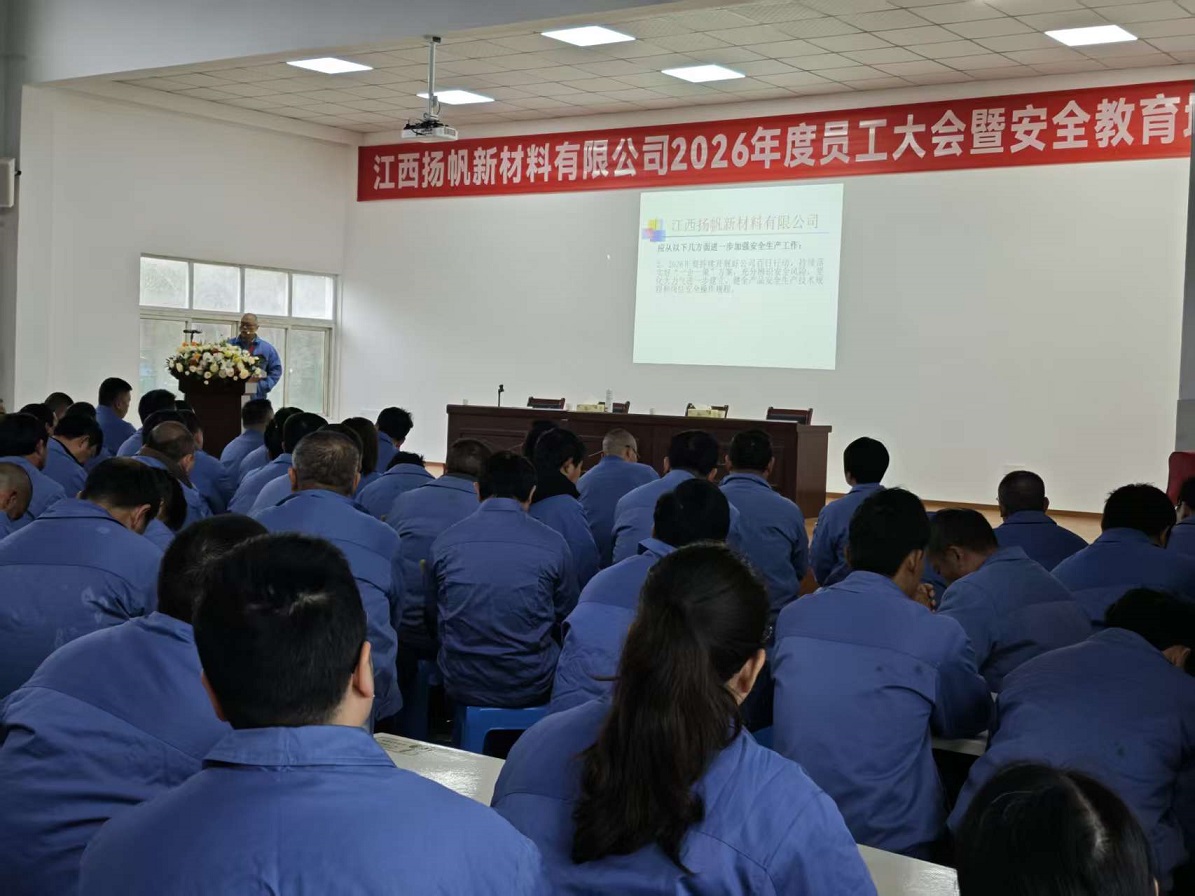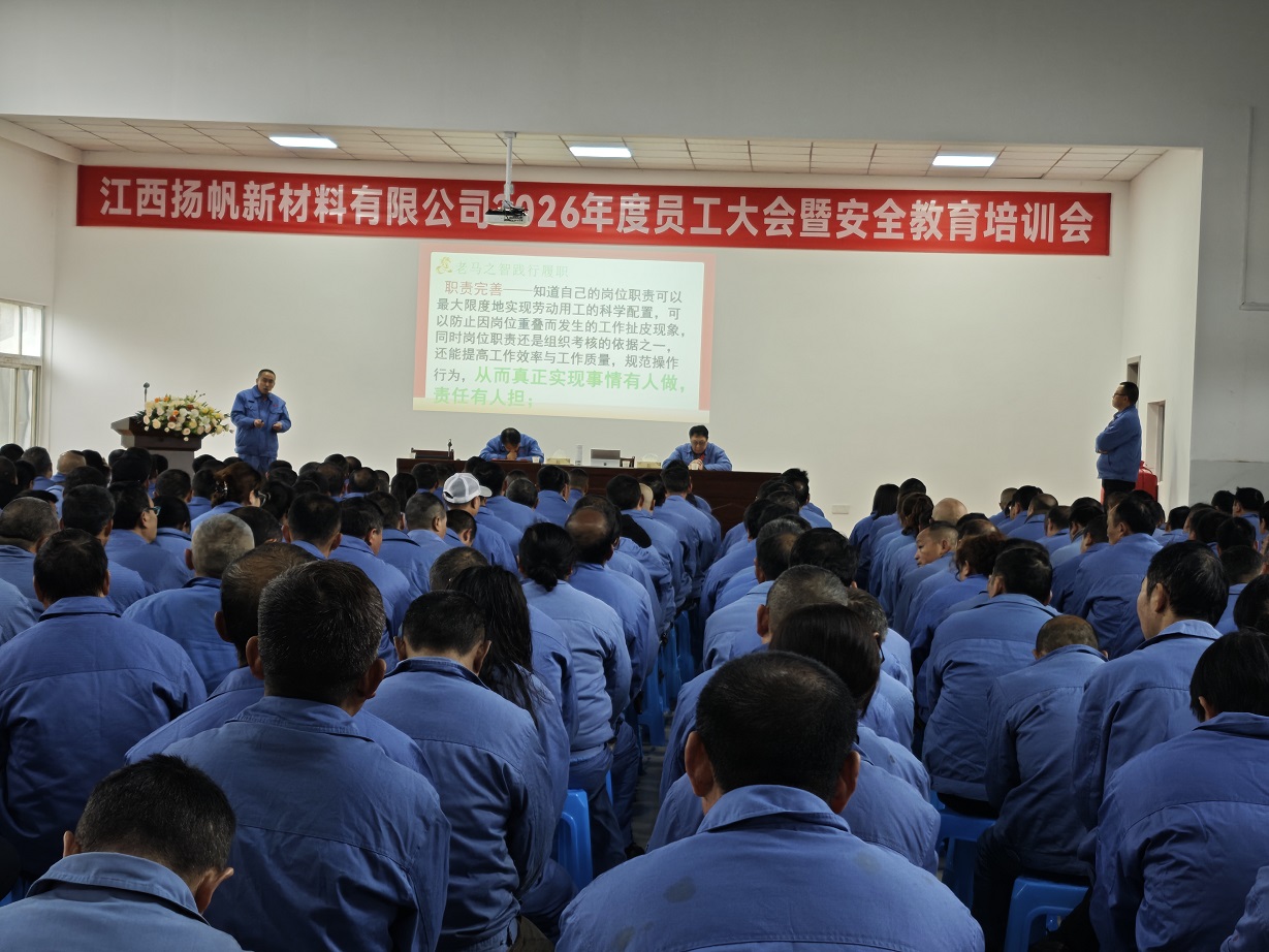 龍馬啟新程,聚力向未來。2月24日,江西揚帆新材料有限公司2026年度員工大會暨安全教育培訓會圓滿召開,全體員工齊聚一堂,總結過往發(fā)展成果、表彰先進模范典型、部署新年工作目標、筑牢安全生產防線,為新一年公司高質量發(fā)展凝聚同心奮進的磅礴力量。本次會議由公司副總經理呂雪皓主持。