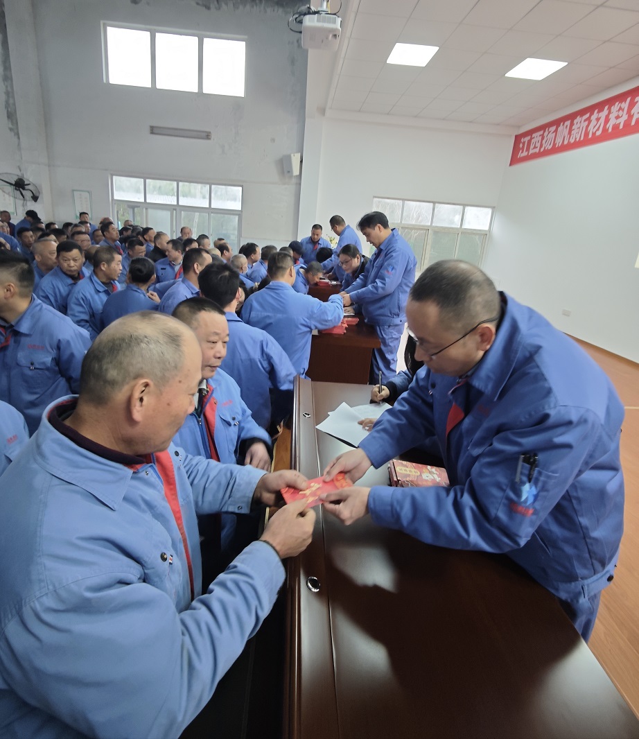 暖心關懷聚人心,砥礪奮進新征程。會議最后,公司為全體員工發(fā)放新年紅包,一份份滿載關懷與期許的紅包,讓全體員工在溫暖的氛圍中感受到揚帆大家庭的凝聚力與向心力,也為新一年的工作注入了滿滿的干勁與活力。